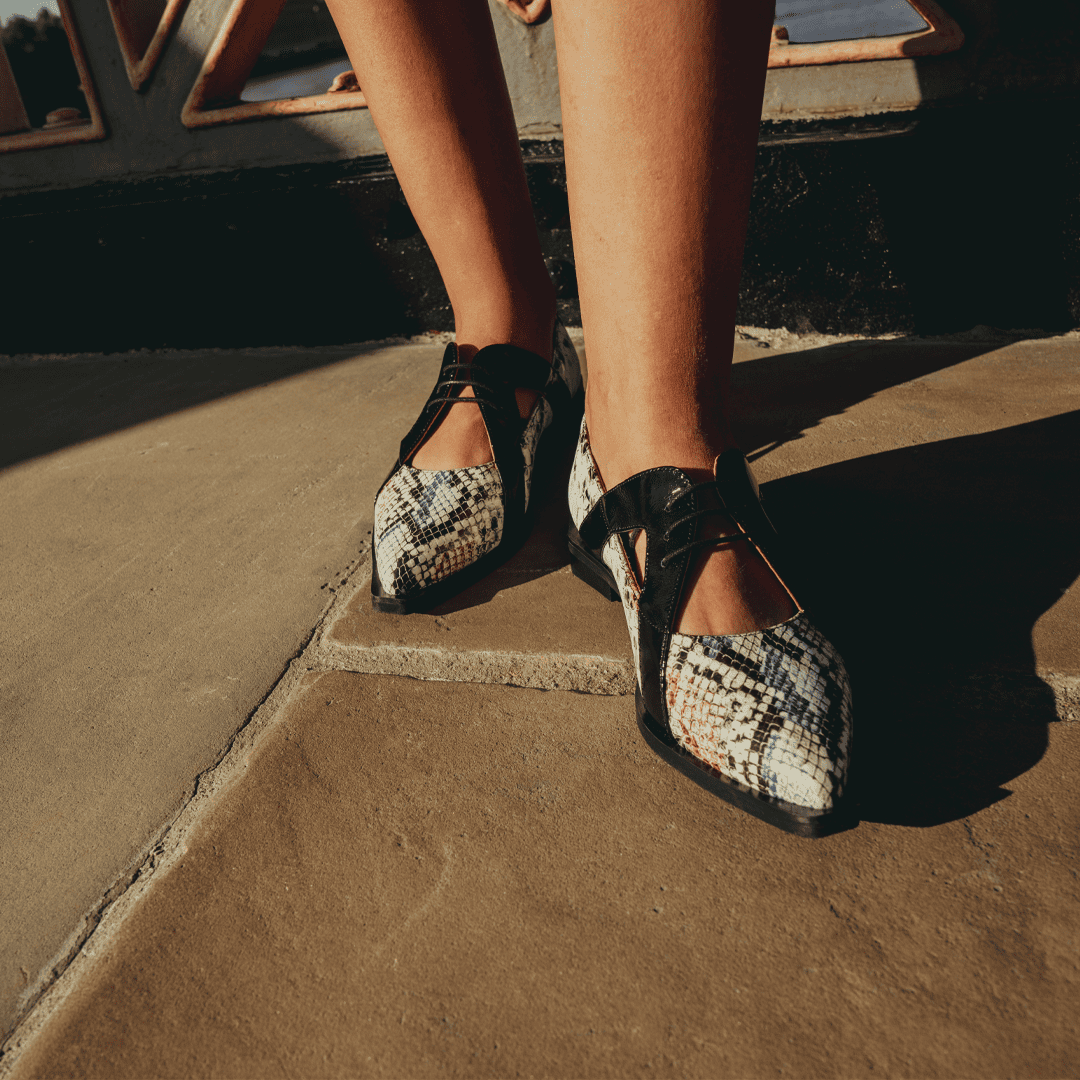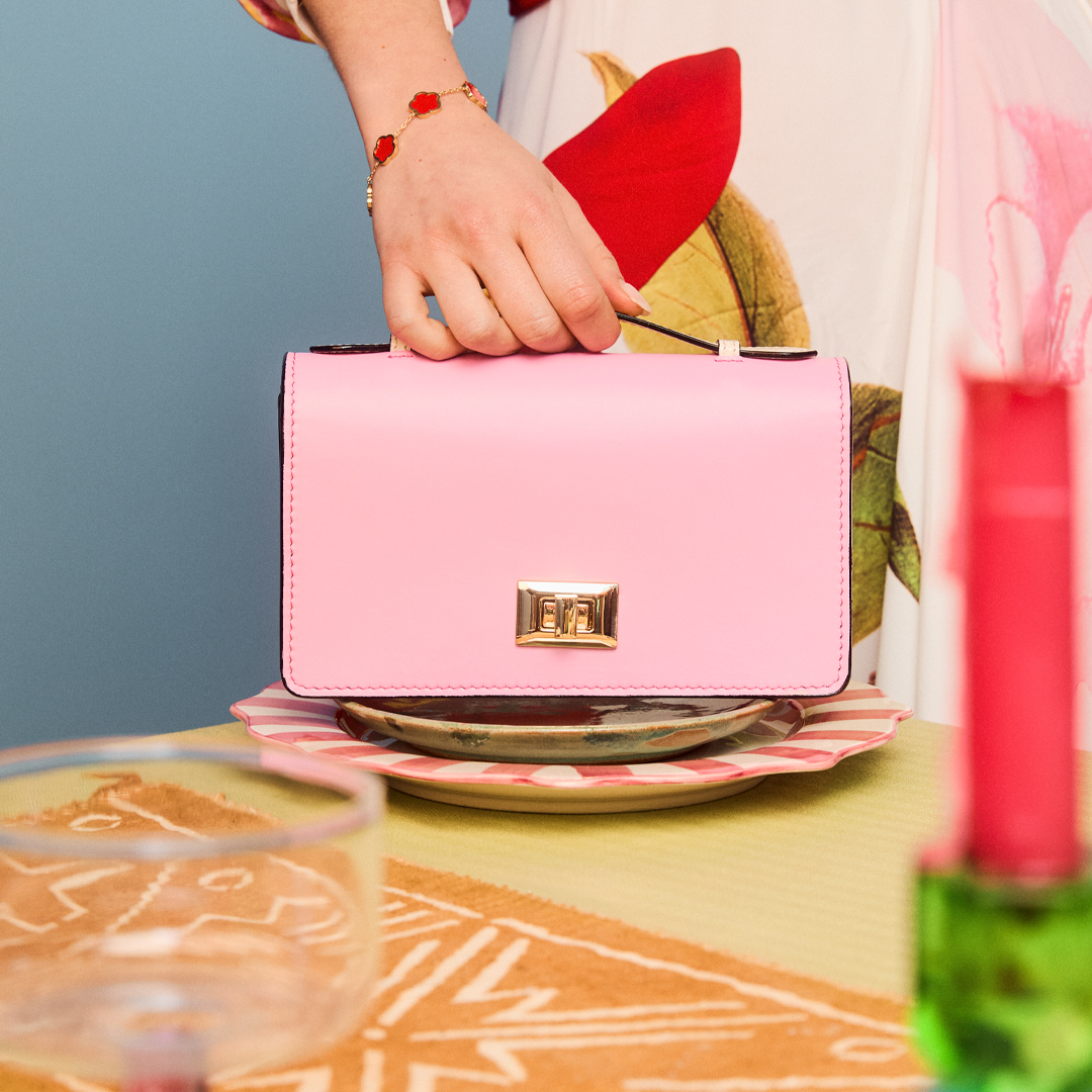 Irina wears the Hyde Heel in Hexaand Gazelle Mini Bag, Greenwich