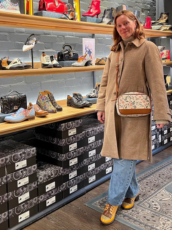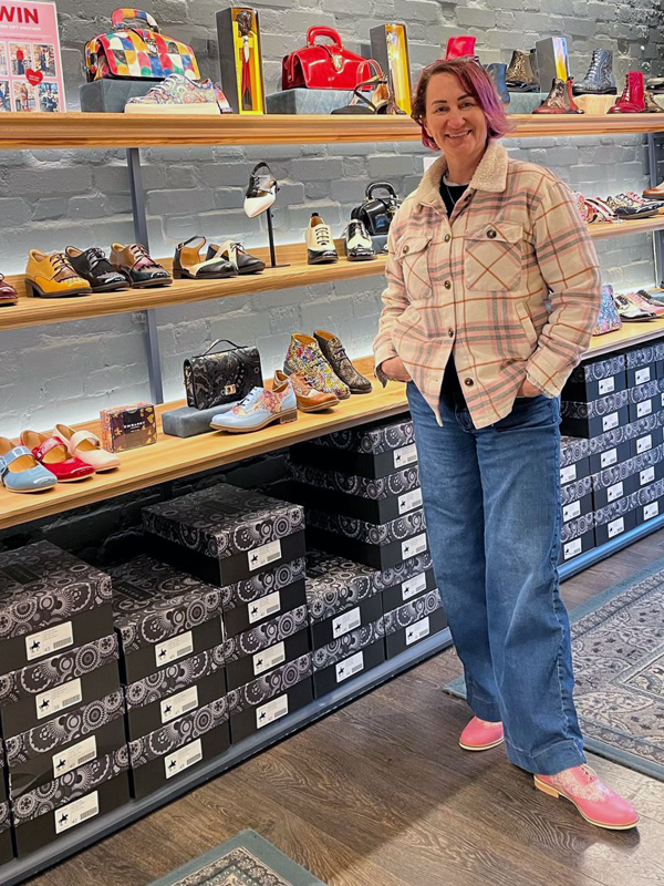 Karol wears the Vivienne Shoe, Greenwich