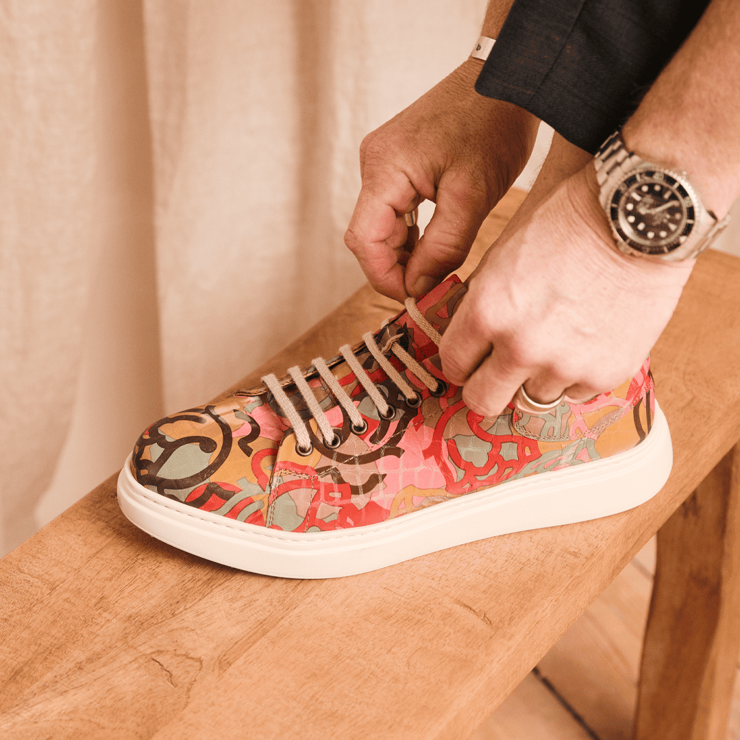 Men's leather loafer with jaquard details