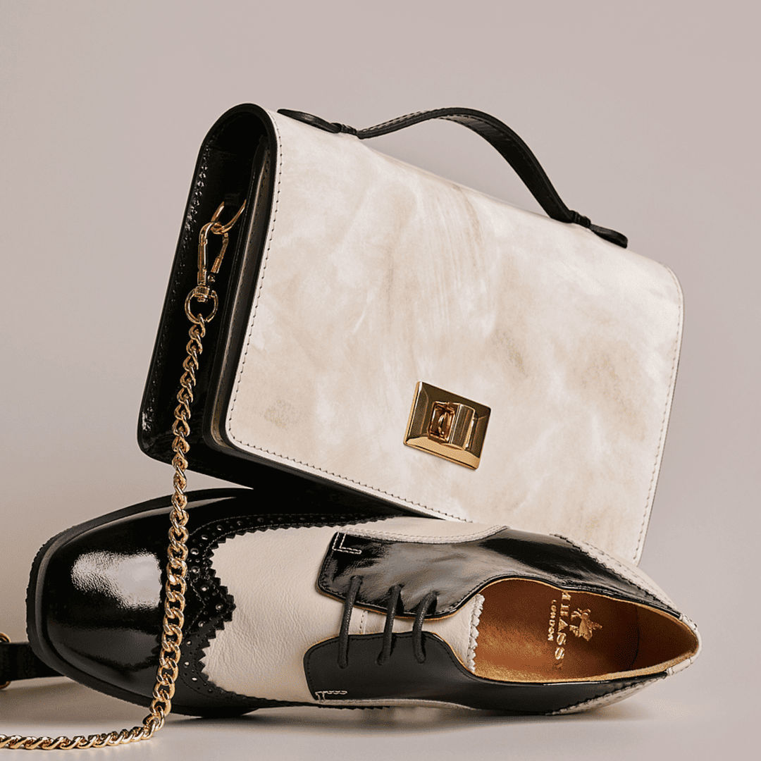 Women's black and cream leather oxford pump in 3 inch heel