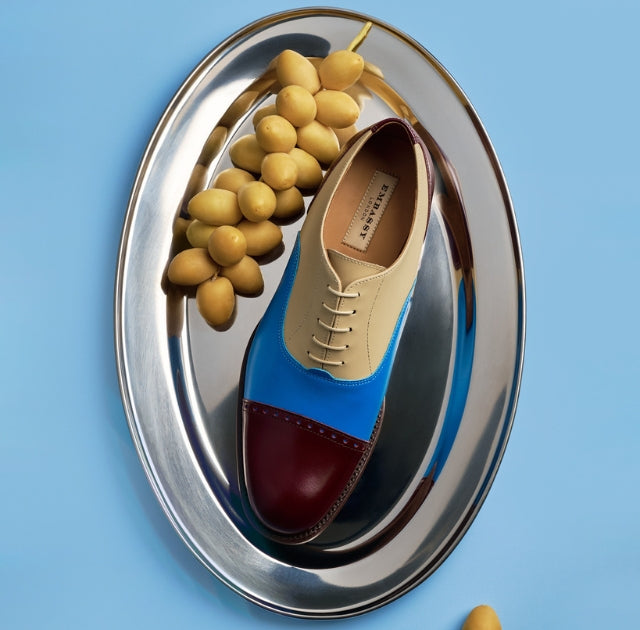 Women's blue leather oxford ankle boot in brogue
