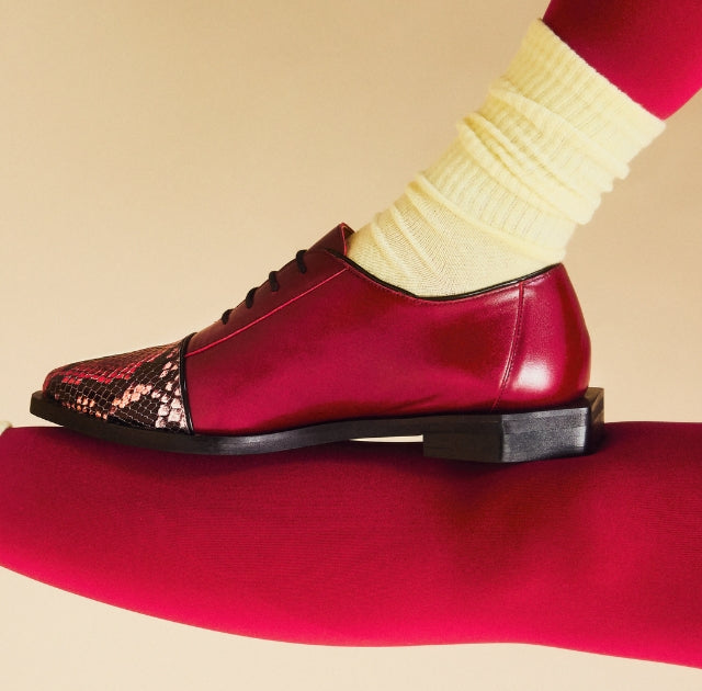 Women's higher ankle leather boot with brogue styling