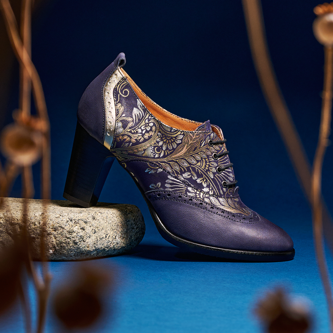 Women's leather lace-up shoe with brogue detailing