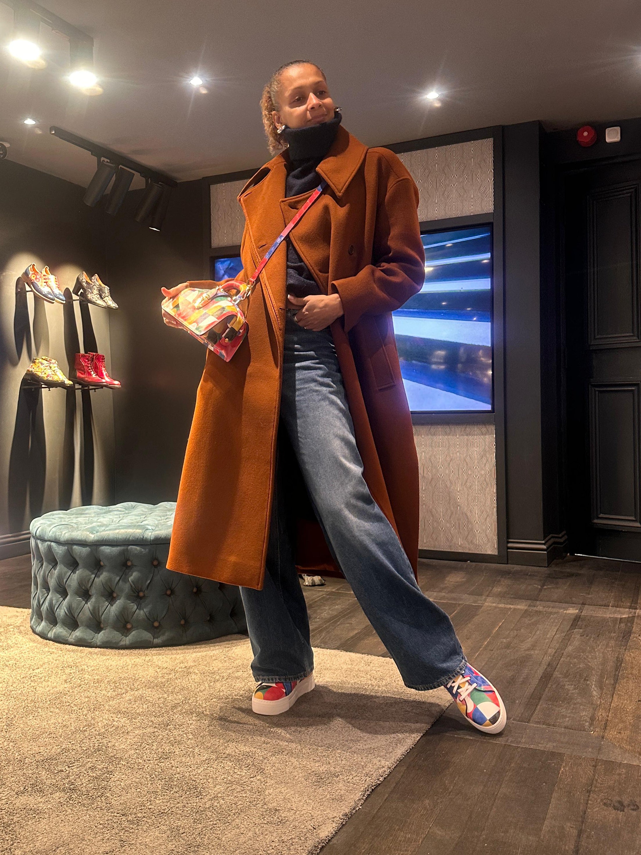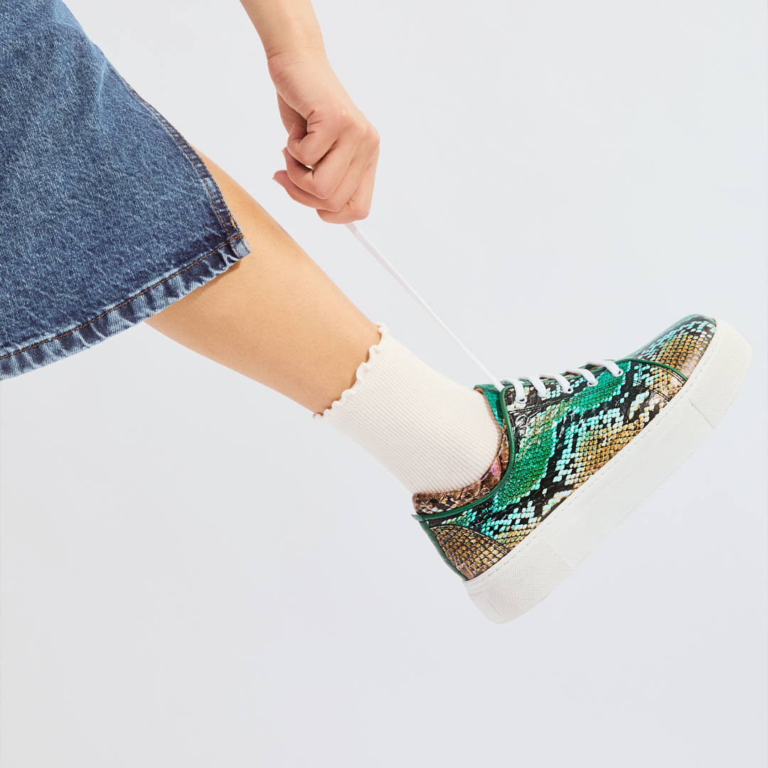 Sylvie wears the Camila Trainer and Gazelle Bag, Canterbury