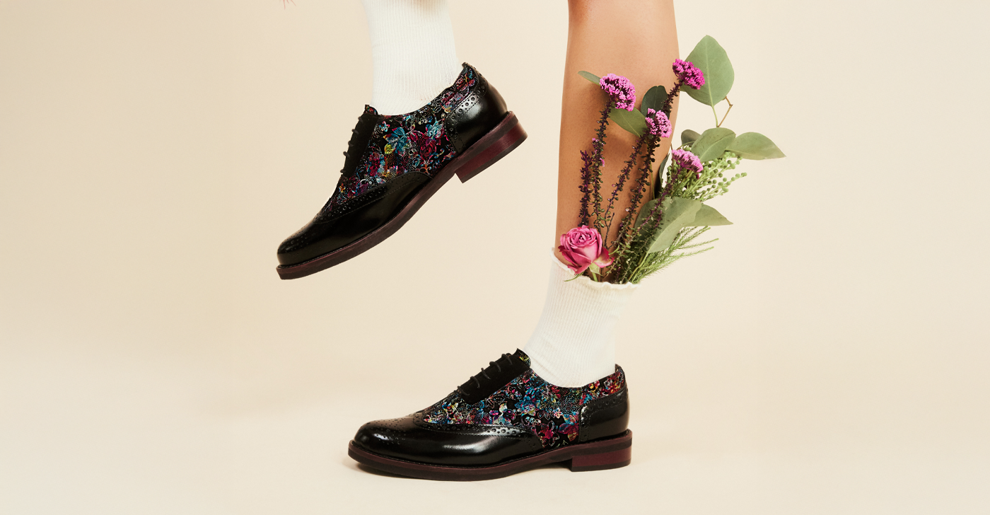 Women’s Leather & Paisley Lace-up Brogue Heel