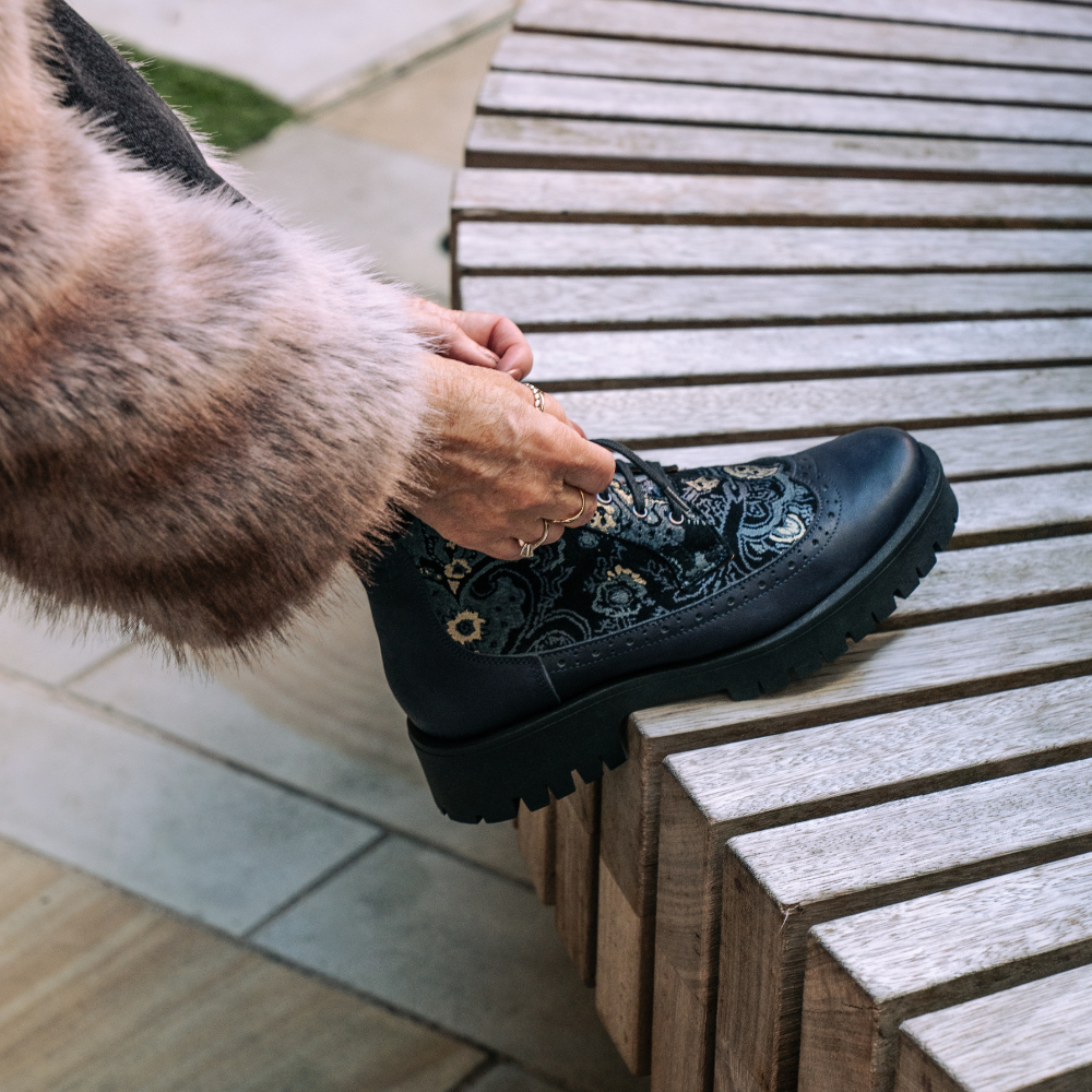 Women's Leather ankle Lace-up Boot with chunky cleated sole