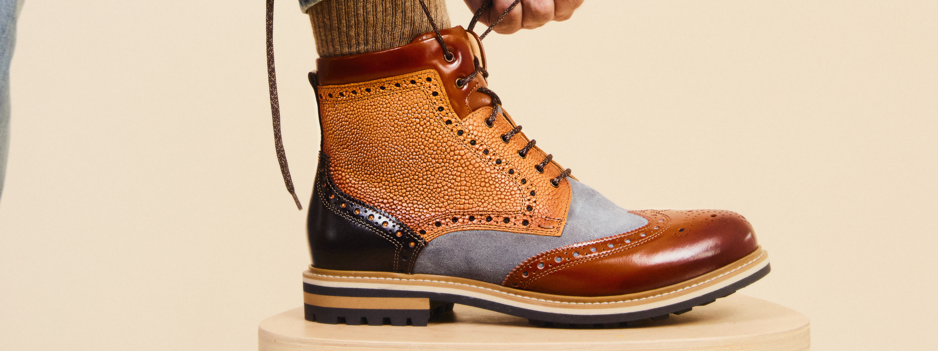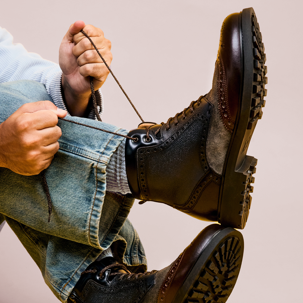 Women's Leather and brushed nubuck suede Ankle Lace-up Boot with chunky cleated sole