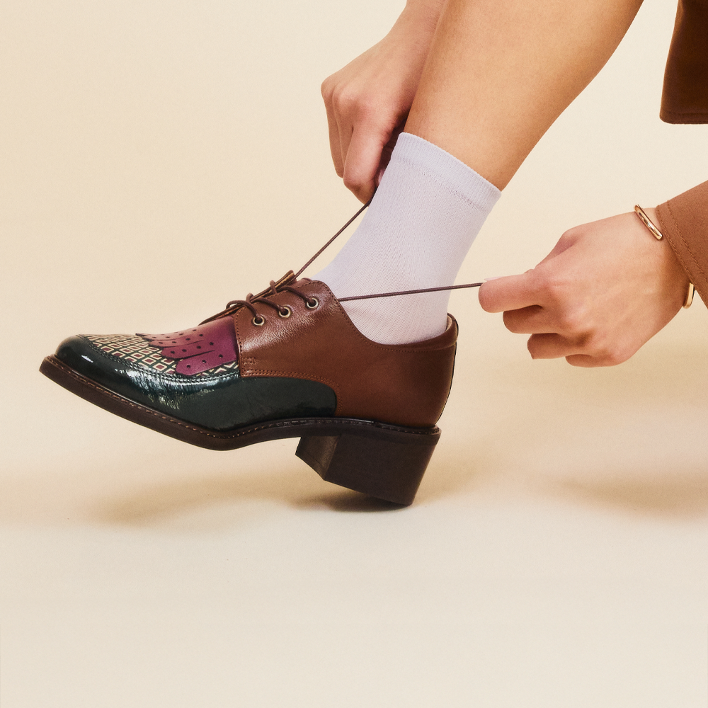 Women's Colour-block leather lace-up with signature kiltie detail