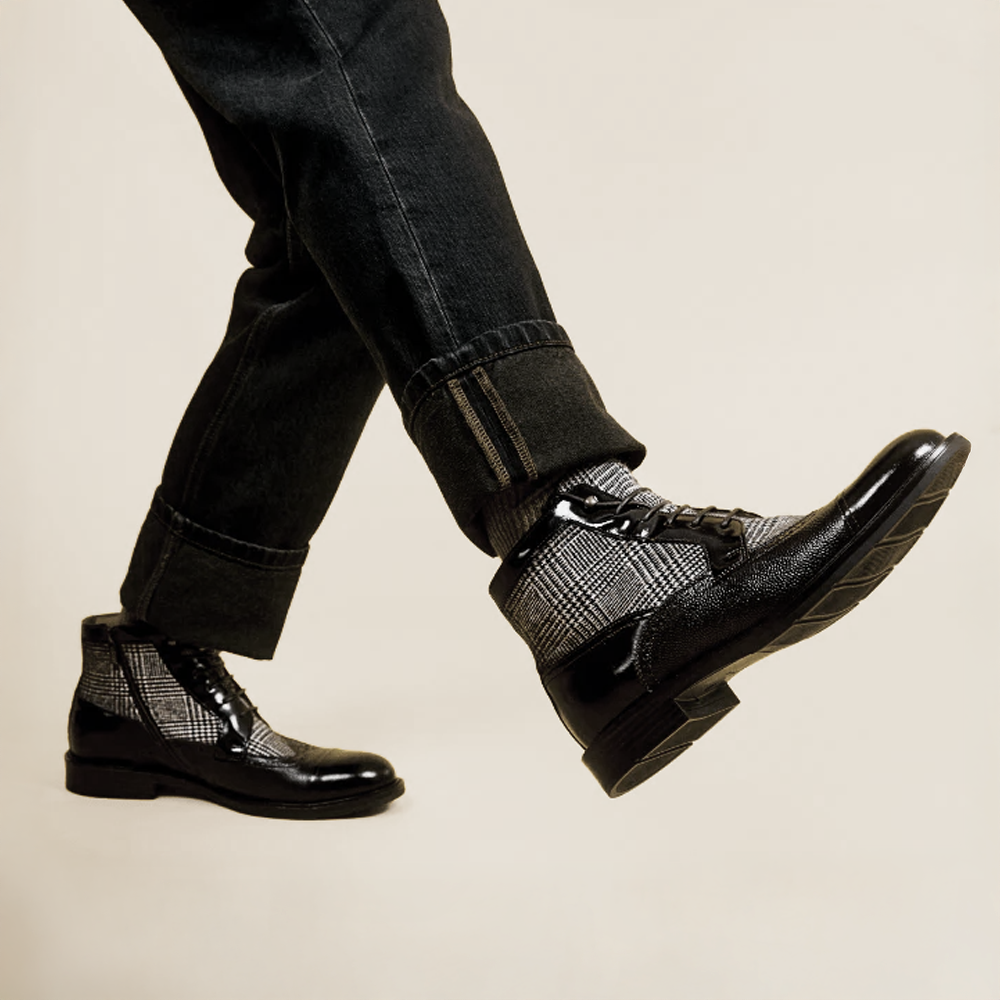 Men's toe cap dressy leather boot in leather and textile