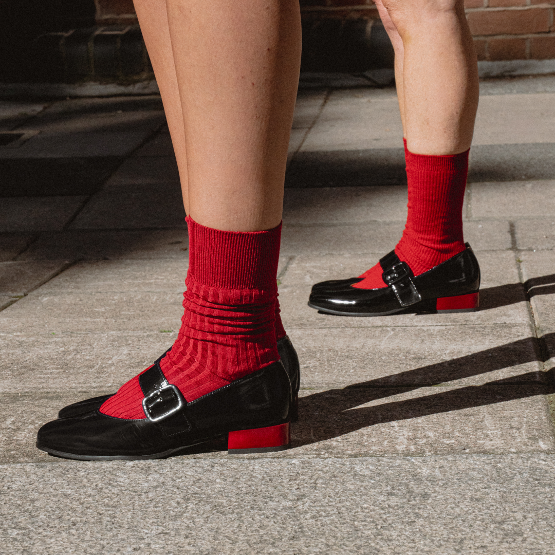 Lily & Serena wear the Bliss Mary-Jane in Black and Red, Brighton