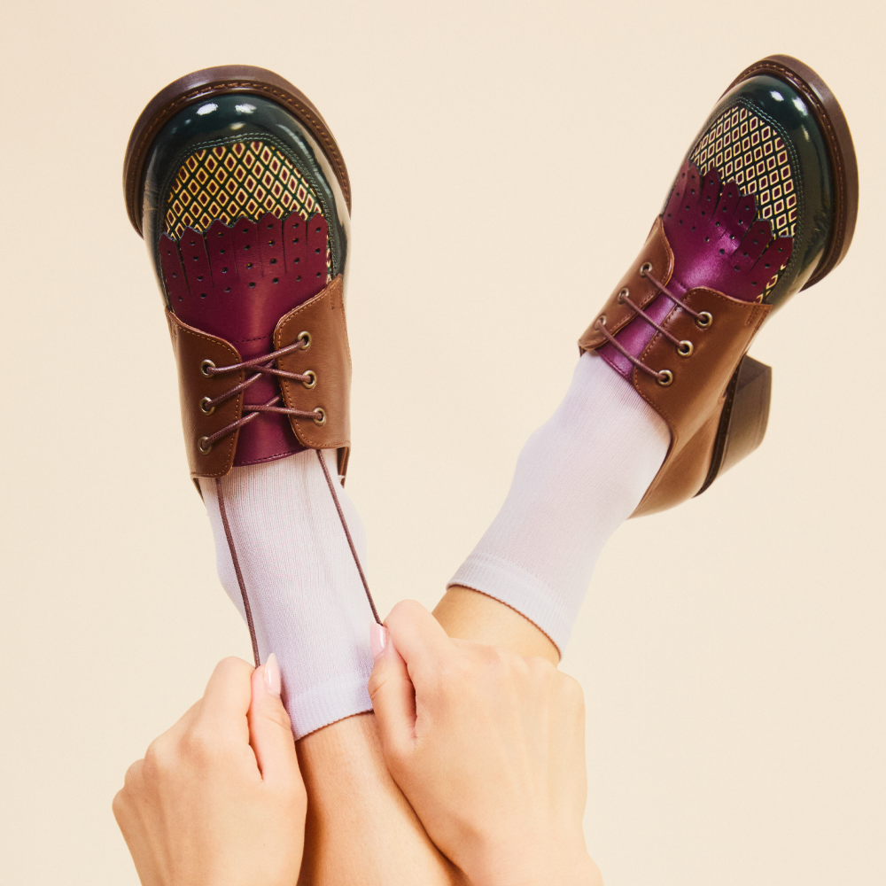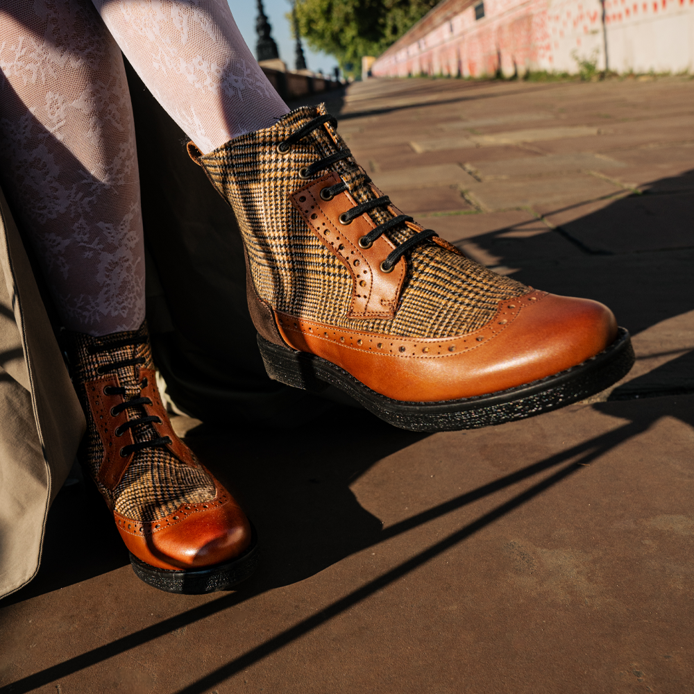 Women's Leather ankle Lace-up Boot with chunky cleated sole